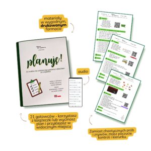 Dzięki bardzo szczegółowym PLANOM masz pełną kontrolę - odhaczasz punkt za punktem, a zwroty dostarczają Ci książeczki. Poznajesz piosenki, podcasty, bajki po angielsku.